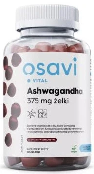 Suplement diety Osavi Ashwagandha z witaminą B6 i B12 o smaku wiśnia 375 mg 90 żelek (5904139922248)