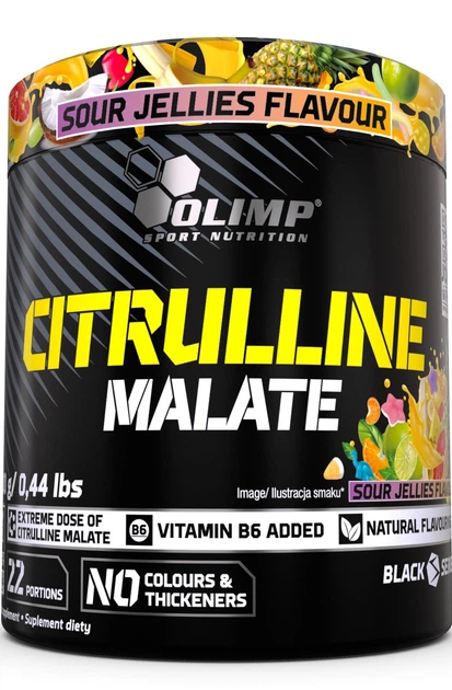 Olimp Citrulline Malate powstała z myślą o osobach aktywnych fizycznie. Jeśli zatem trenujesz amatorsko lub jesteś wyczynowym, profesjonalnym sportowcem, musisz spróbować jabłczanu cytruliny marki Olimp Sport Nutrition! To nie tylko świetny, orzeźwiający smak, ale przede wszystkim solidna porcja wspomnianego jabłczanu cytruliny i witaminy B6, które stanowią wsparcie wobec wyczerpujących treningów siłowych i wytrzymałościowych.