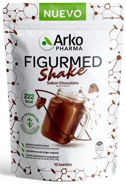 Arkopharma Figurmed Shake to koktajl zastępujący posiłek, wspomagający kontrolę wagi i zatrzymywanie płynów. Smak czekoladowy. Tylko 222 kcal w koktajlu. Dla dorosłych.