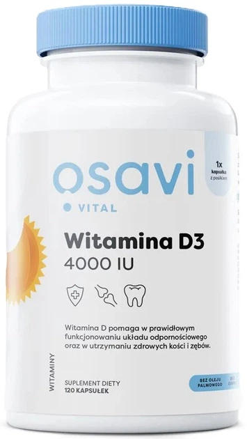 Witamina D3 Osavi to suplement diety w postaci kapsułki miękkiej z witaminą D3 (cholekalcyferol) rozpuszczoną w oleju MCT z kokosa. Quali-D to stabilna i biodostępna forma witaminy D3, naturalnie pozyskiwana z lanoliny.