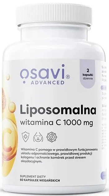 Osavi Liposomalna Witamina C 1000 mg to suplement diety w kapsułkach zawierający witaminę C w formie liposomalnej Liposovit-C. Dzięki zastosowaniu technologii liposomalnej witamina C jest połączona z fosfolipidami z lecytyny słonecznikowej, co stanowi nowoczesną formę jej dostarczania w suplementach diety.