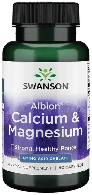 Swanson Albion Кальцій і Магній – це харчова добавка, що забезпечує необхідні мінерали в хелатній формі, що забезпечує їх високу біодоступність. Кальцій і магній мають вирішальне значення для підтримки здоров'я кісток і зубів, а також функціонування м'язової та нервової систем.