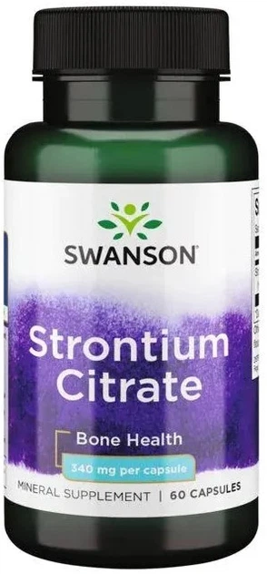 Swanson Strontium Citrate – це харчова добавка, що містить 340 мг стронцію у формі стронцію цитрату в кожній капсулі. Стронцій підтримує здоров'я кісток і може допомогти підтримувати їх щільність.